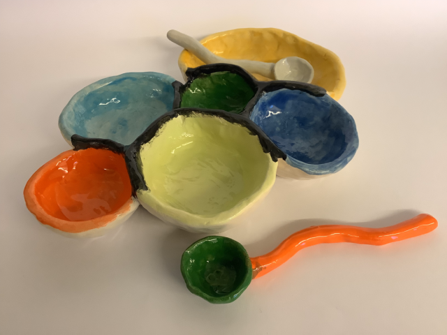 Am zweiten Kurstag besteht dann die Möglichkeit die bereits fertig gebrannten Gegenstände mit Glasur farbig zu bemalen.